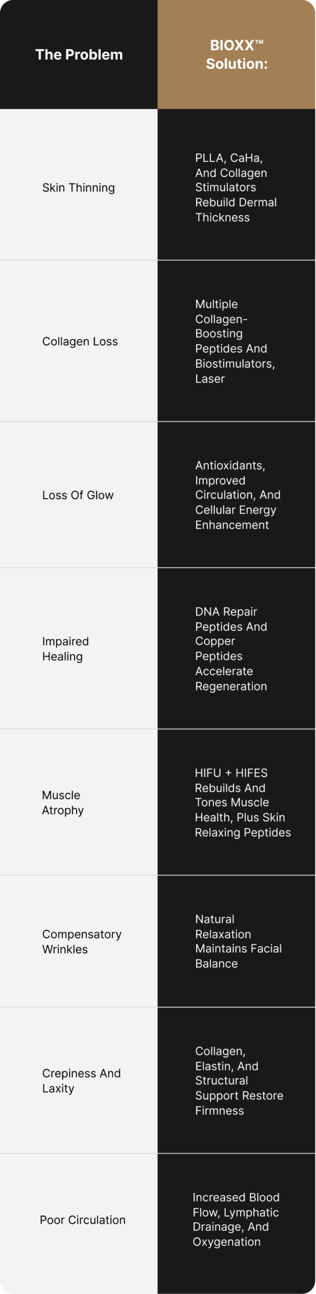 Bioxx™ directly counters every single one of these with collagen and elastin stimulation,