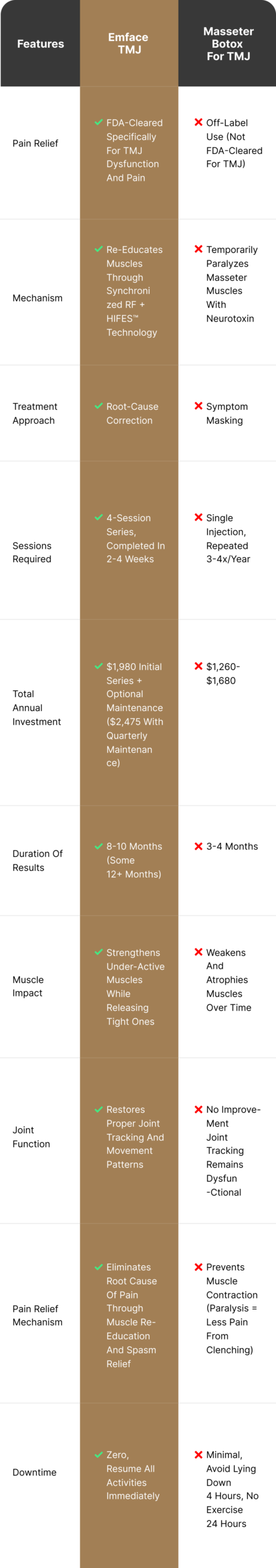 For years, masseter Botox has been the go-to solution for TMJ symptoms. But here’s what most patients don’t realize until they’ve spent thousands on repeated injections: Botox is a band-aid, not a solution. It temporarily masks symptoms by paralyzing muscles, without addressing why those muscles became dysfunctional in the first place.