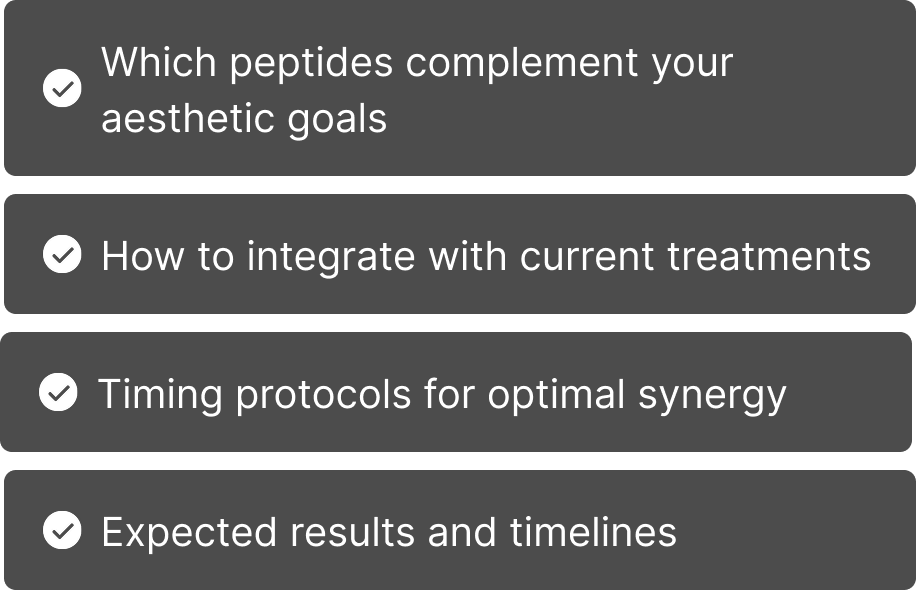 Accelerate healing and optimize results from aesthetic treatments, lasers, injectables, or procedures through tissue repair and regeneration support (BPC-157, GHK-Cu).