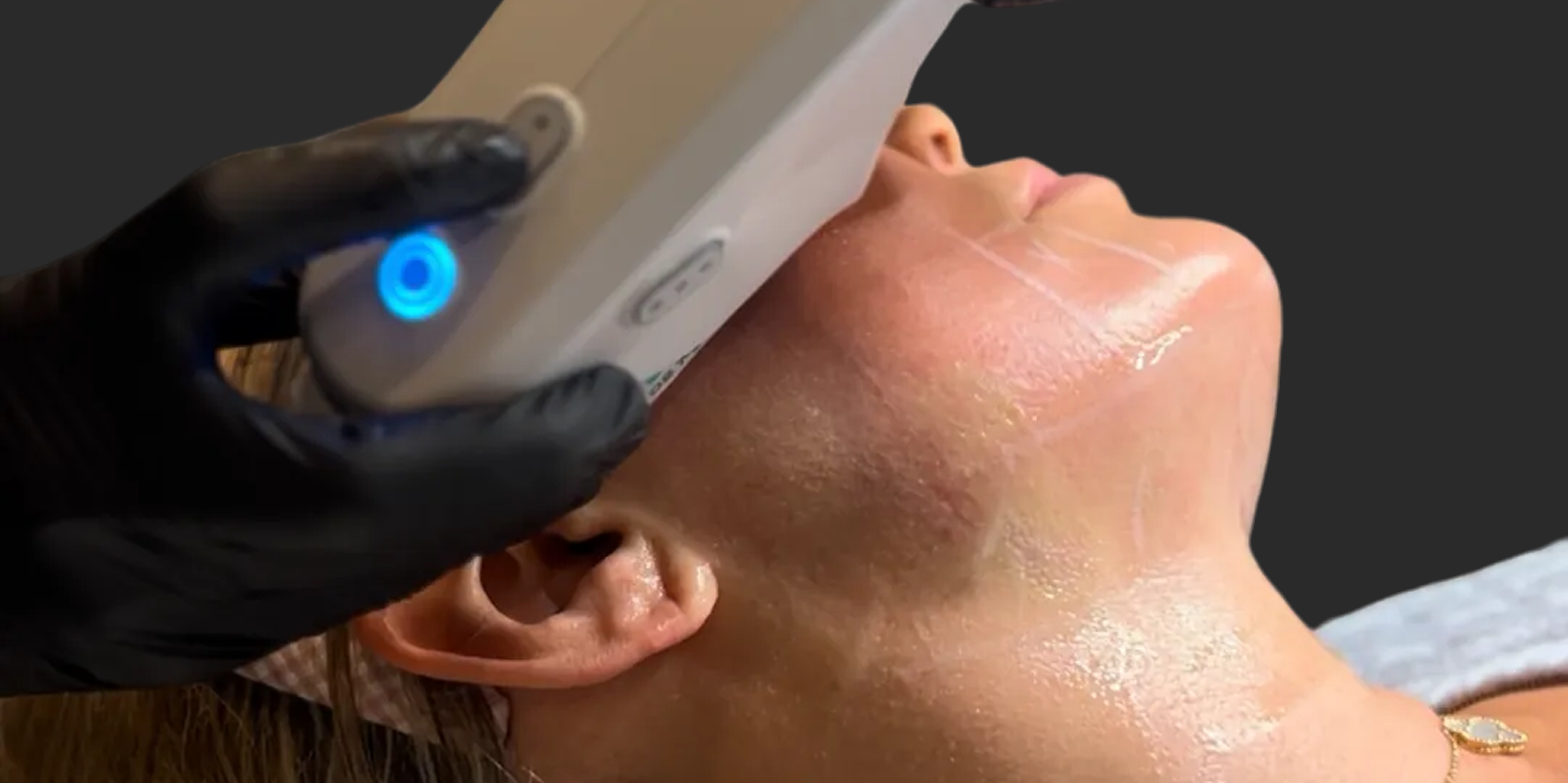 It’s a targeted Ultherapy protocol that delivers micro-focused ultrasound energy exclusively to the SMAS layer under the chin and along the jawline, creating an internal “V-strap”—like a non-invasive ponytail lift—to lift and sculpt the lower face without surgery or fillers.